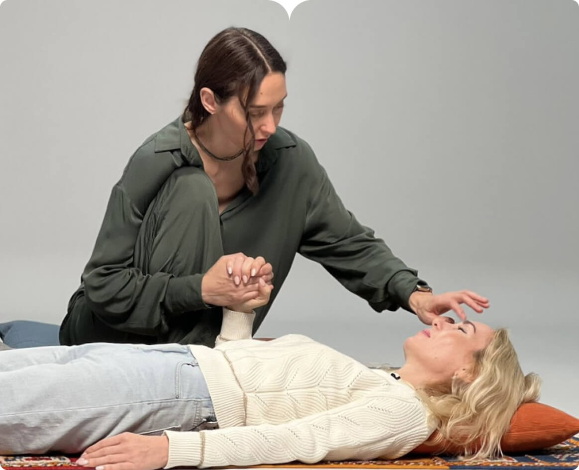 Контакт с телом, прикосновения, чувствование, раппорт.